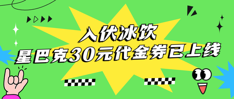 高温、炎热与冰爽饮品最搭配哦,入伏福利当然首先为大家准备一款超值的冰饮代金券啦:30元星巴克代金券,能让你在入伏当天体验冰饮带来的清凉哦。积分充足的小伙伴们,赶快行动吧!