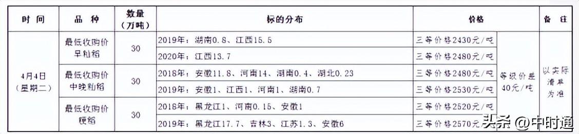 4月4日最低收购价稻谷继续拍卖,早籼稻、中晚籼稻和粳稻各投放30万吨。