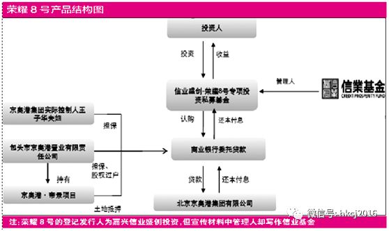 基金业协会数据显示,荣耀1号成立于2017年5月,管理人为信业基金旗下的全资子公司石河子信远业丰股权投资管理有限公司(以下称“石河子信远业丰”),募资总额4.2亿元、收益率在8%-8.5%之间,存续期2年。荣耀1号用于受让长安信托·北京京奥港地产投资单一信托(信托贷款总额4.2亿元)、长安信托·北京京奥港地产投资集合信托(信托贷款2亿元)的信托受益权。上述两个信托募资投向北京京奥港置业有限公司(以下称“京奥港置业”)开发的北京一处保障房项目。