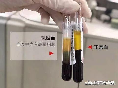 我们吃的脂肪经过在小肠消化、吸收后,变成细小的乳糜微粒进入血液,乳糜微粒多到一定程度时,血清就由清澈透明的淡黄色液体变成乳白色的黏稠液体,这时,我们医学上就叫它做乳糜血。
