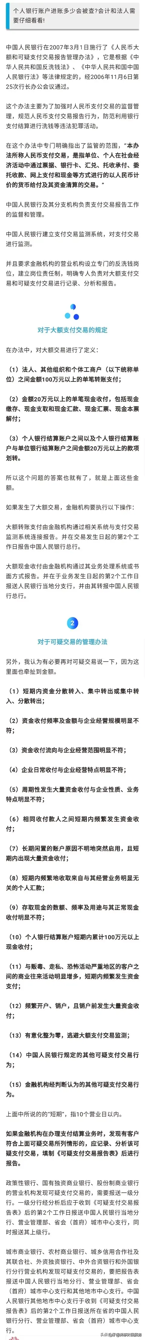 很多人去银行存钱, 当你账户钱超了这个额度, 银行账户就会被查!